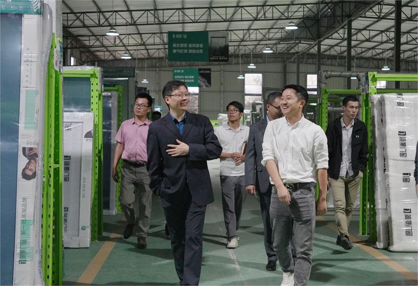吳總陪同趙樂東先生一行參觀了推拉智造中心、平開智造中心,深入了解簡景的生產(chǎn)工藝與產(chǎn)品特性。吳總對生產(chǎn)工藝流程進行了講解并詳細介紹了新品的技術(shù)優(yōu)勢。